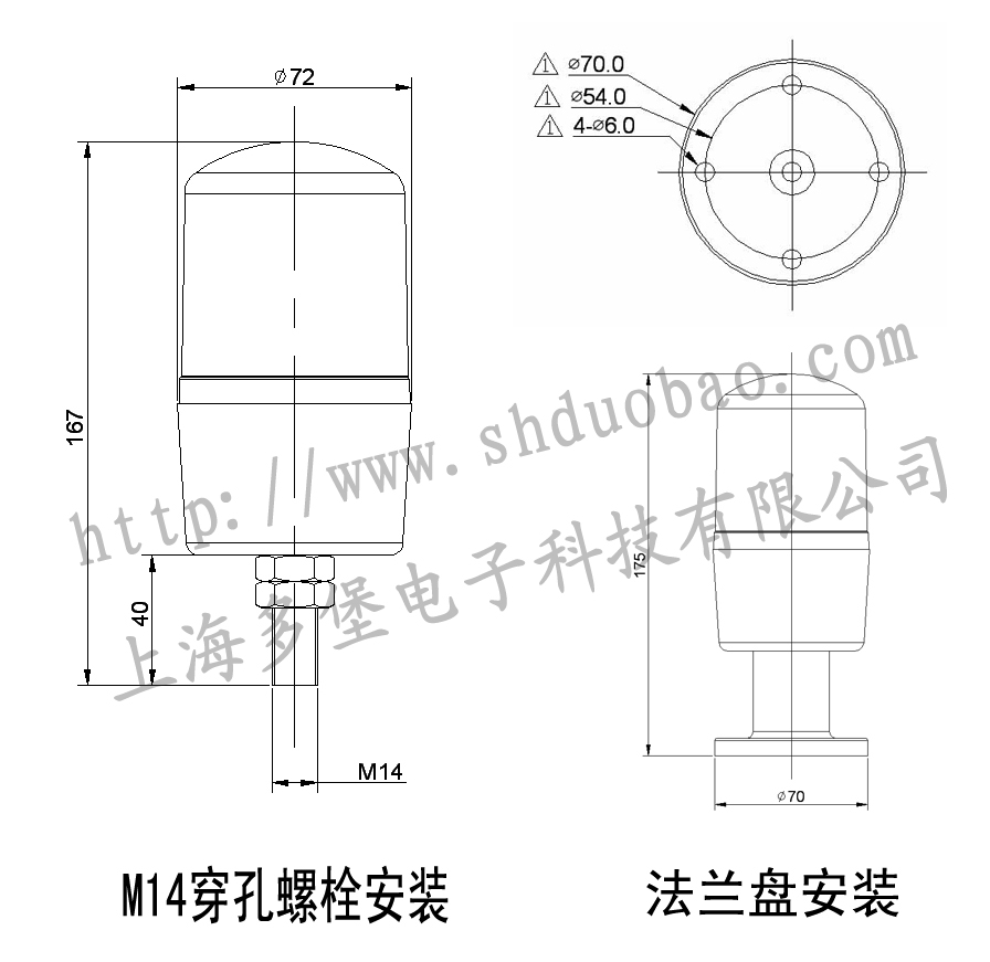 灯体发光部分采用进口超亮发光二极管制成,具有发光效率高、耗电量少、发热低、寿命长、工作稳定等优点。安装方式为M14螺栓中空穿线,可单独安装,使用 方便。